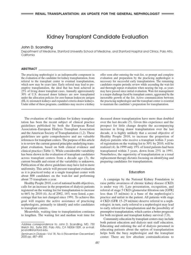 Kidney Transplant Candidate Evaluation PDF Kidney Transplantation